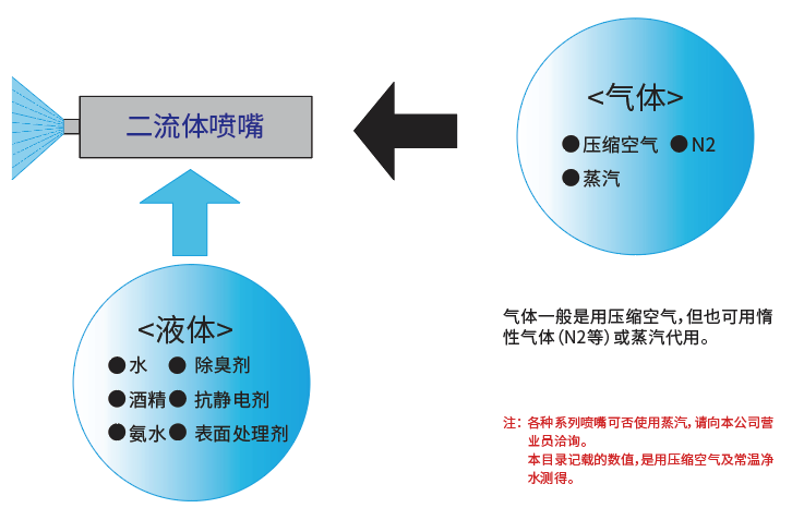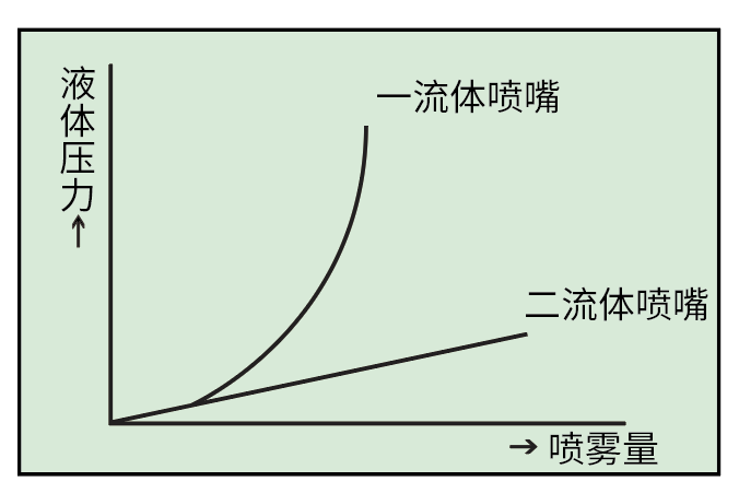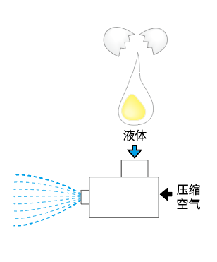 二流体喷嘴能够雾化到平均粒子径10μm或10μm以下,这是一流体喷嘴难以实现的。